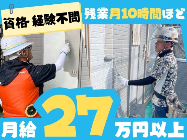未経験から安定性抜群の「塗装」のプロに■残業月10hほど■月給27万円以上の高収入